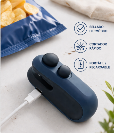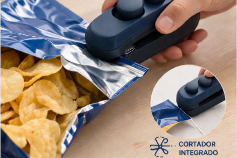 Funciona con la mayoría de bolsas plásticas comunes (snacks, arroz, pasta, etc.). No es apto para bolsas muy gruesas tipo industrial.